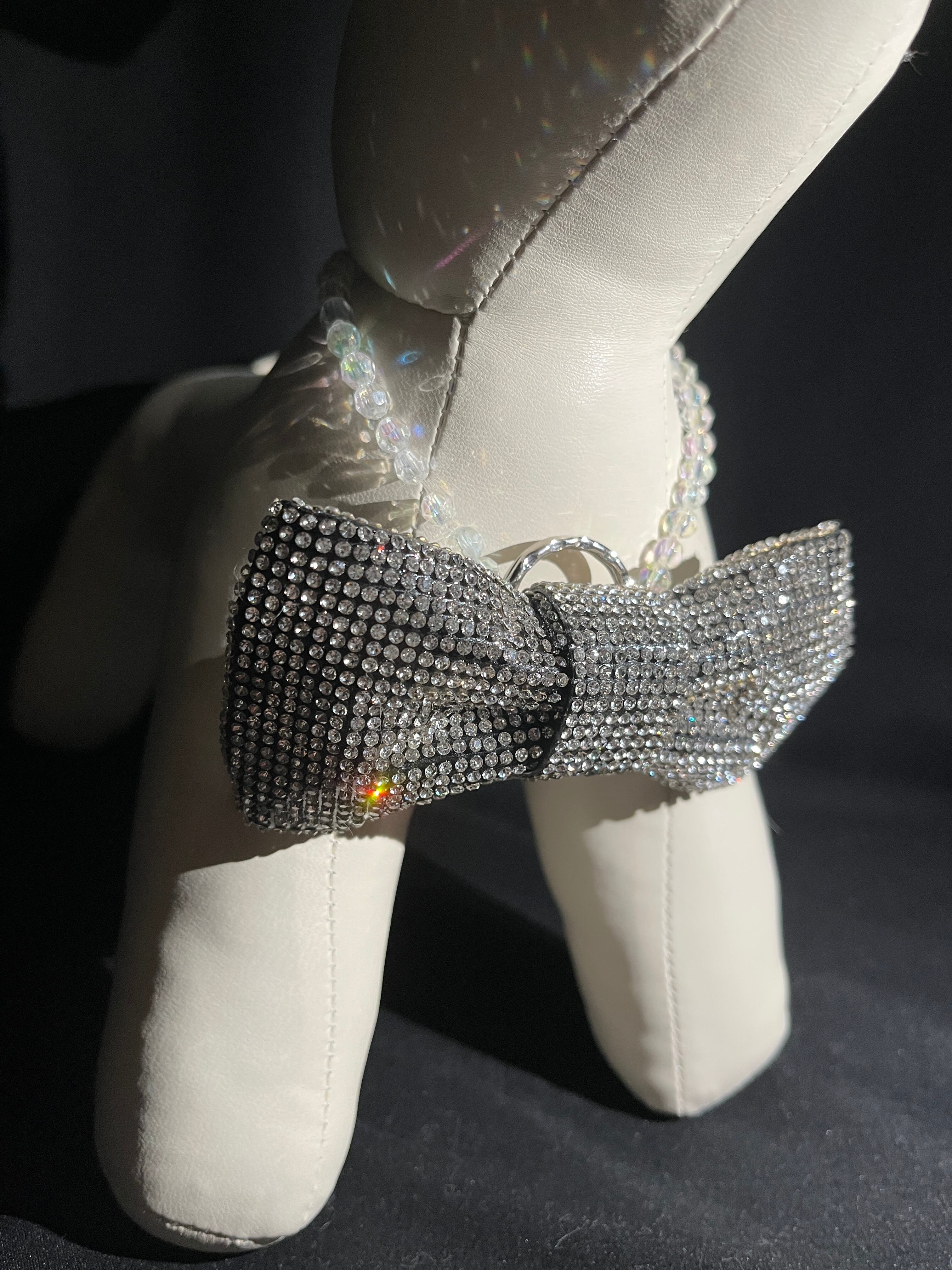 犬用の首飾りです。クリスタルカラーのリボン。 ネック部分はゴムなので頭からかぶる形で着用できます。